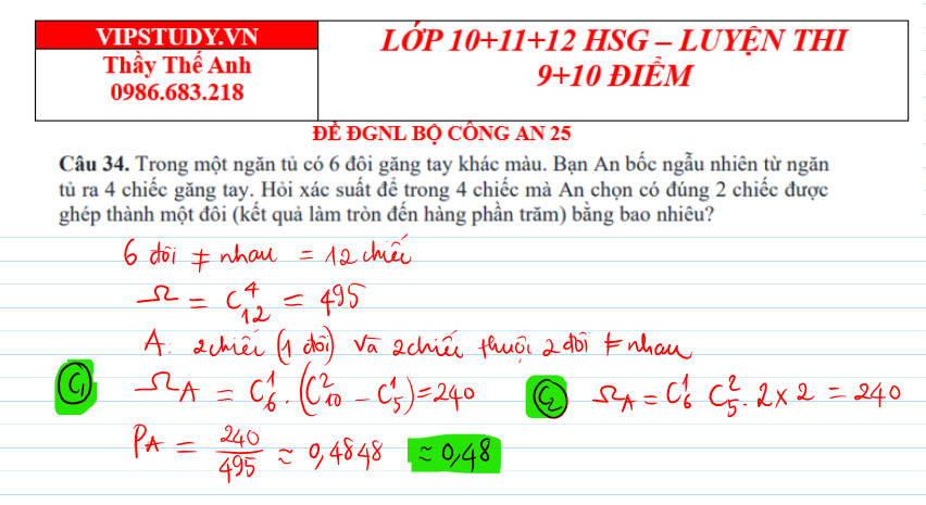 Bài toán chọn tất- Bài toán nâng bậc Xác suất nâng cao -Luyện thi ĐGNL Bộ công an 2025