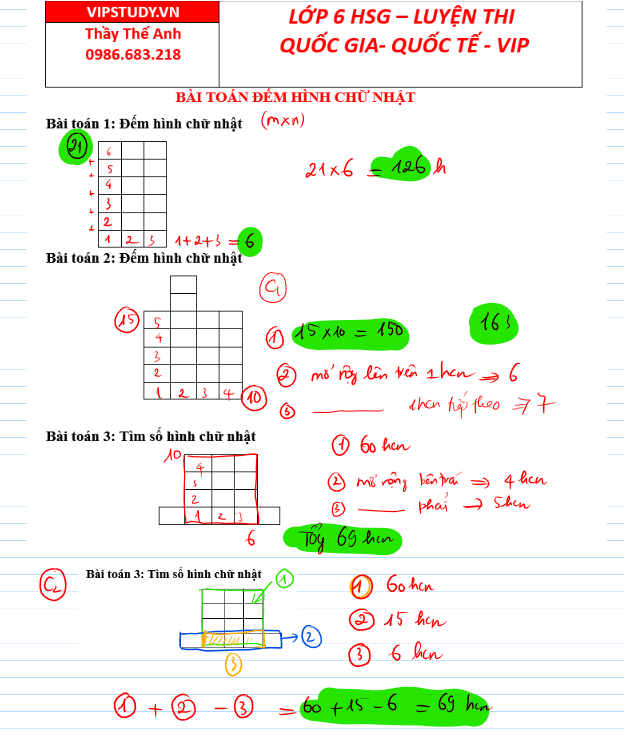 Bài toán đếm số hình chữ nhật trong các kì thi Toán quốc gia quốc tế HSG lớp 6