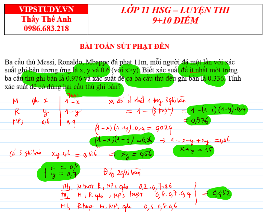 BÀI TOÁN SÚT PHẠT ĐỀN - Học sinh giỏi lớp 11