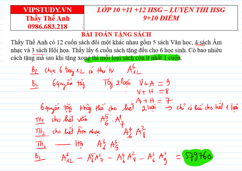 Bài toán tặng sách -còn lại ít nhất mỗi loại một cuốn