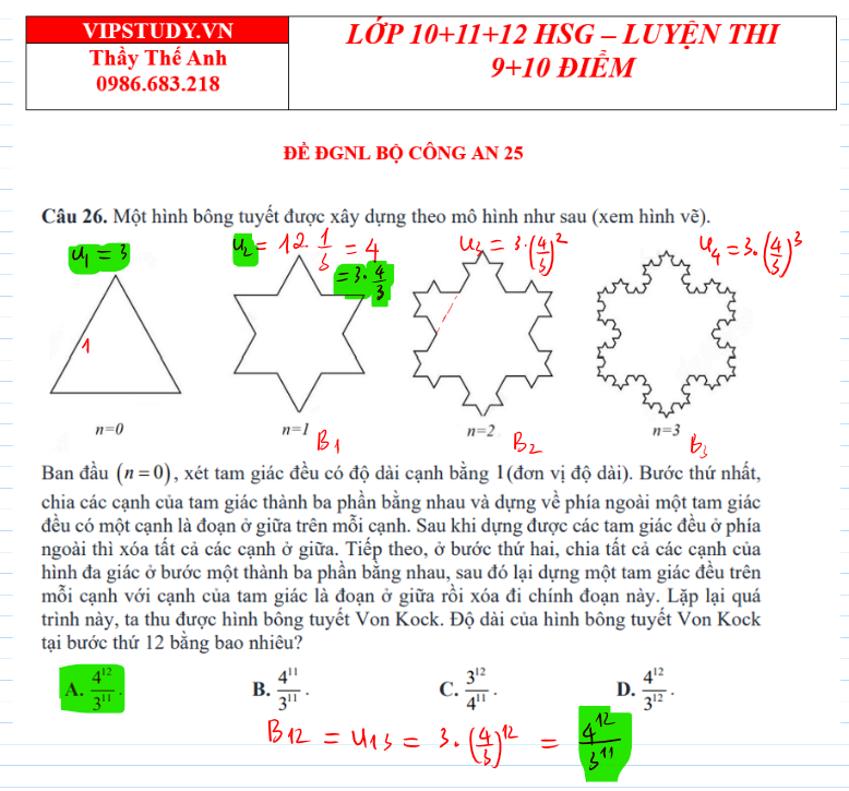 Bài toán Von Koch- bông tuyết Vôn Kốc -Luyện thi HSG giỏi 9 10 điểm