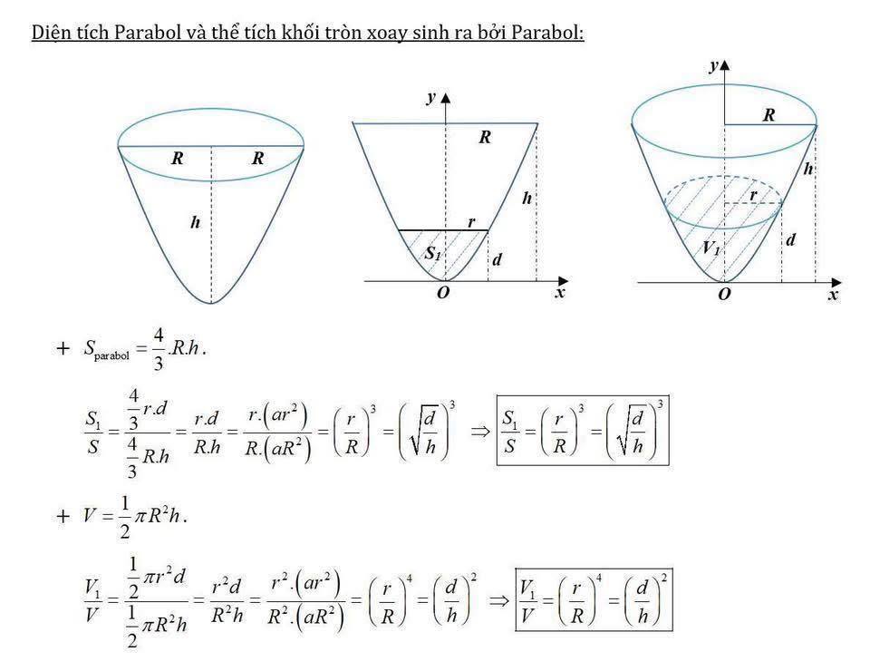 Công thức giải nhanh diện tích, thể tích Parabol siêu hay -cực nhanh
