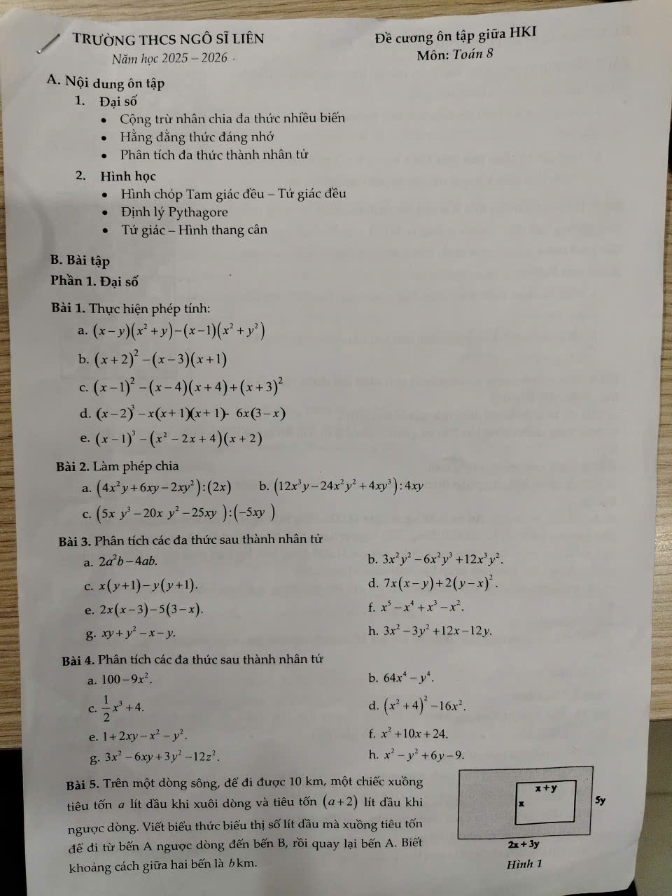 Đề cương giữa kì 1 lớp 8 Ngô Sĩ Liên 2025