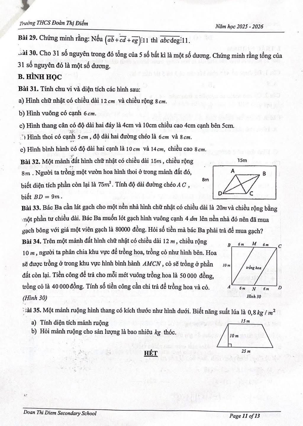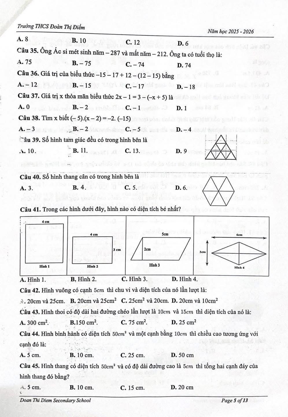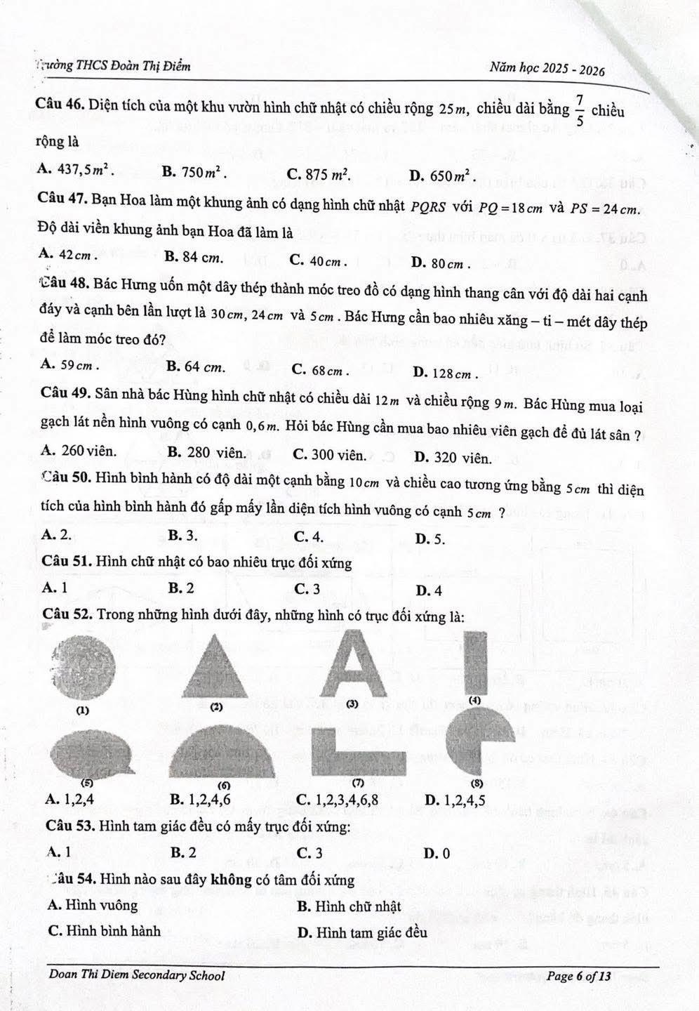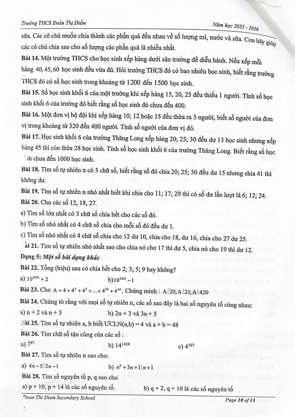 Đề cương hk1 lớp 6 Đoàn thị điểm 2025