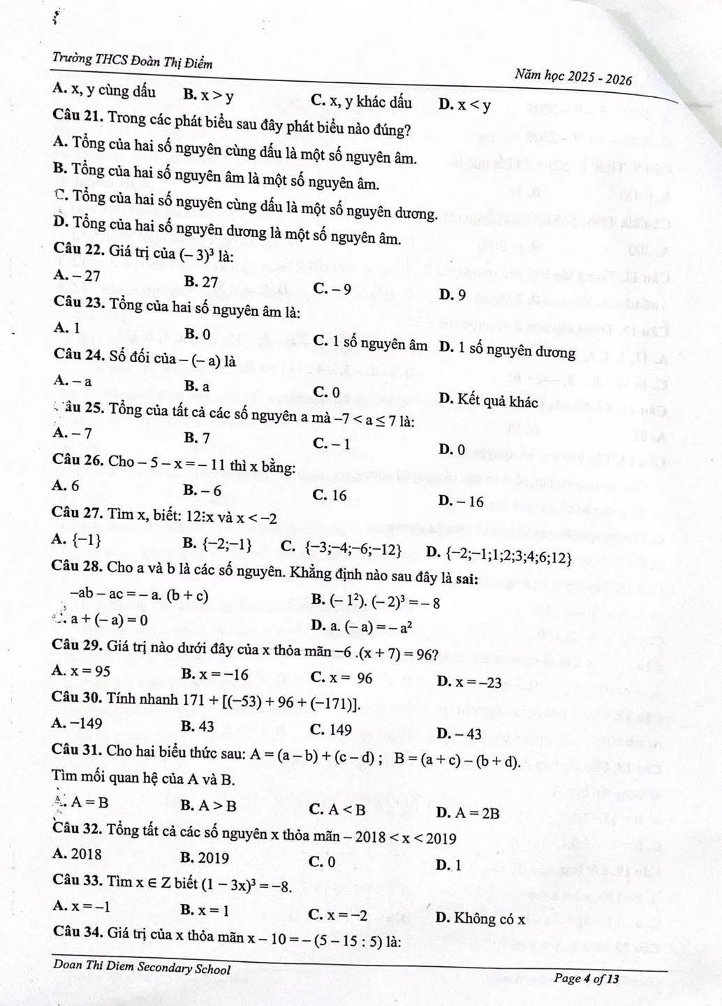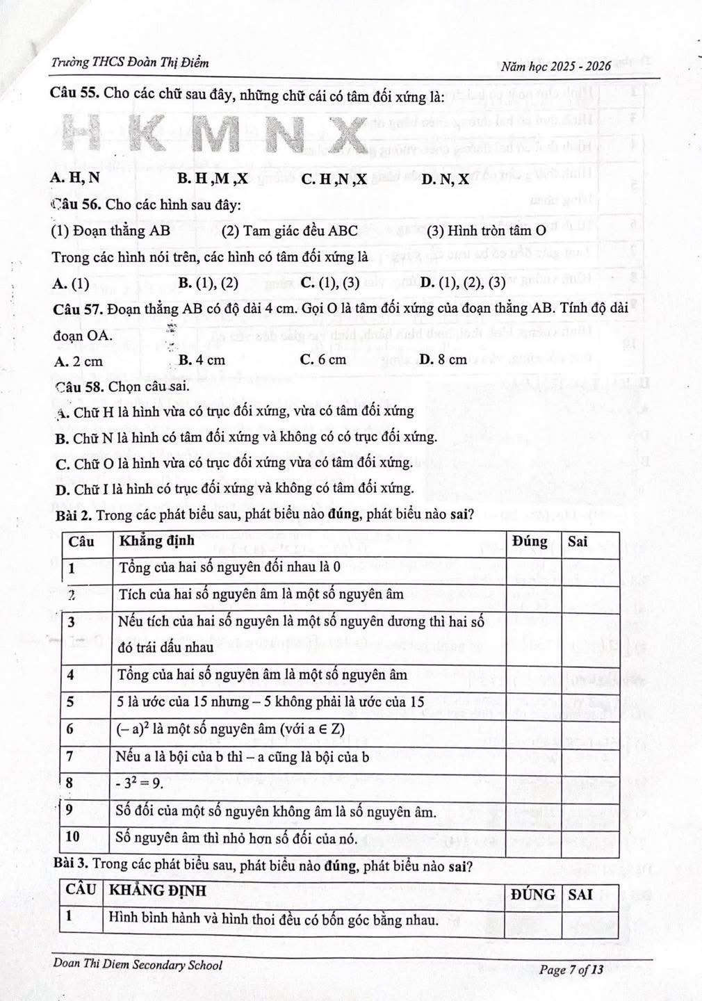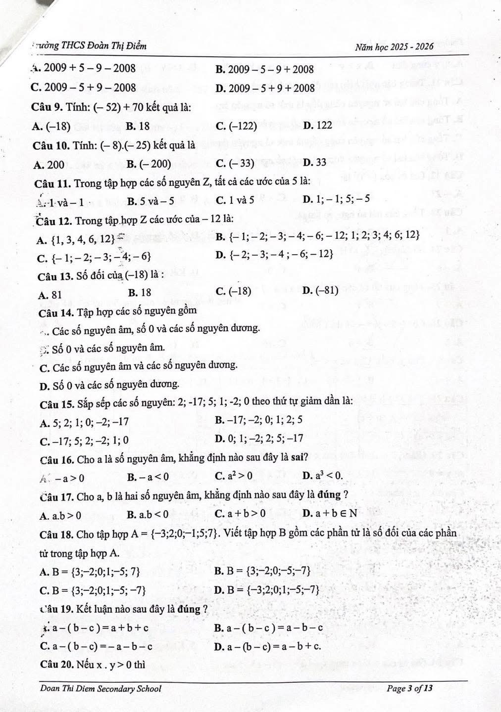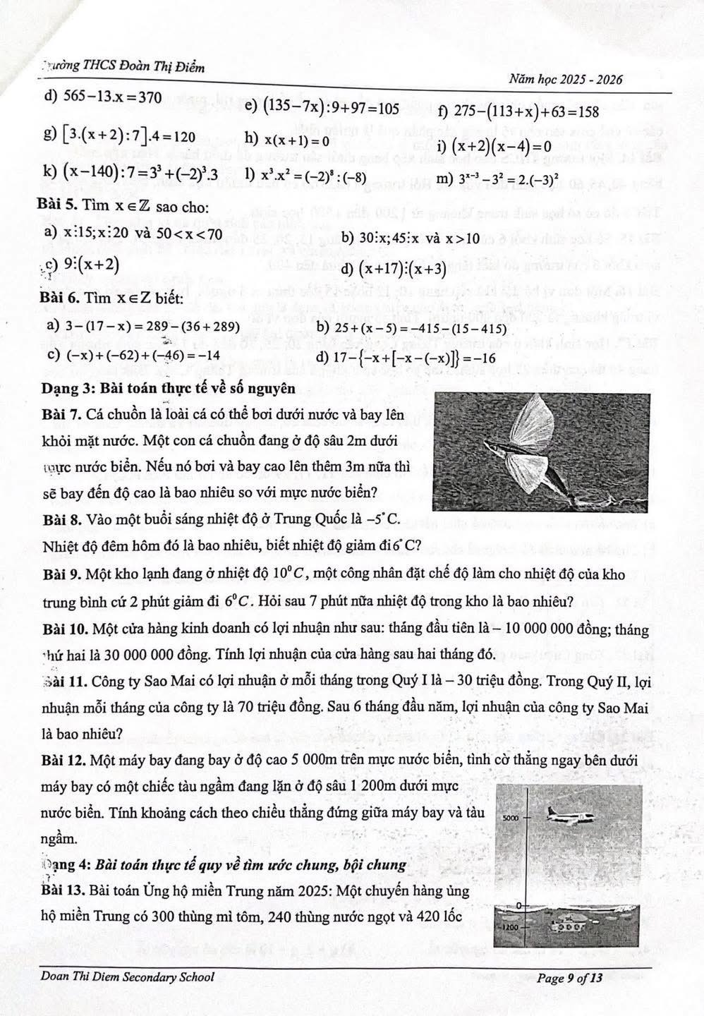 Đề cương hk1 lớp 6 Đoàn thị điểm 2025