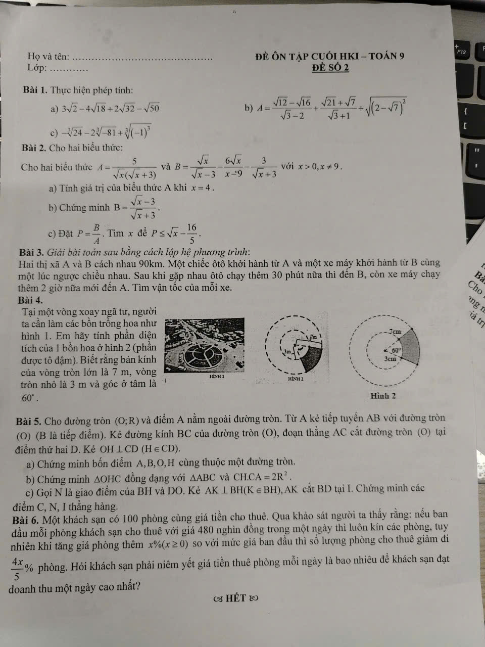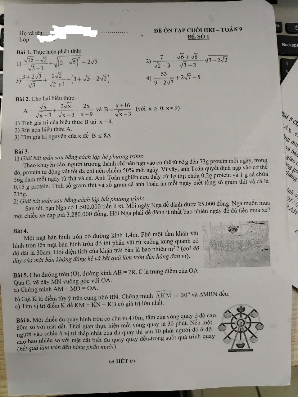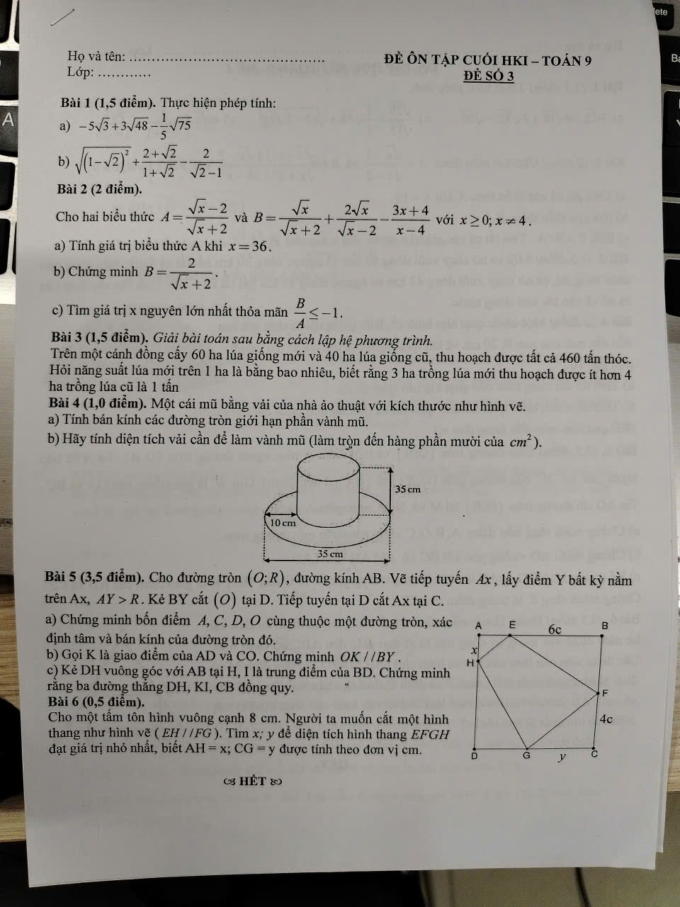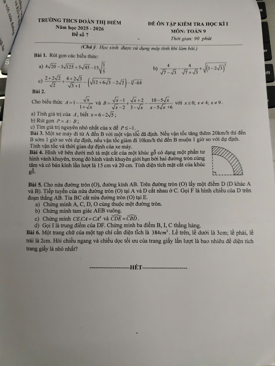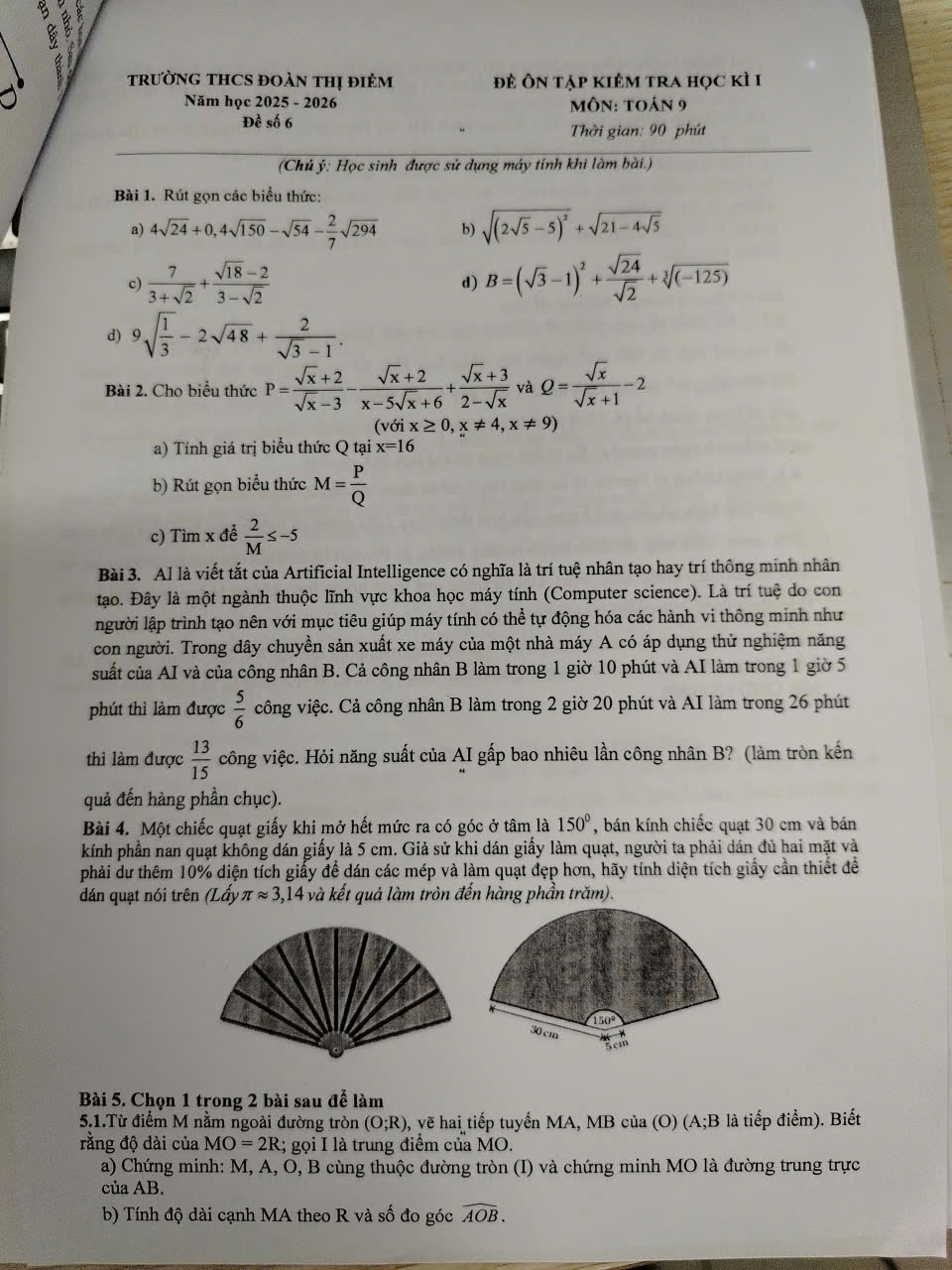 Tuyển tập Đề thi hk1 lớp 9 Đoàn Thị Điểm 2025
