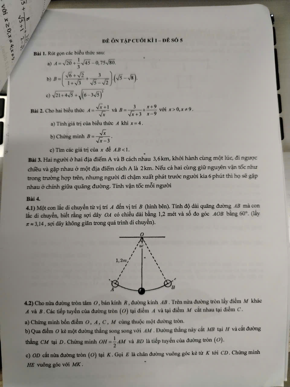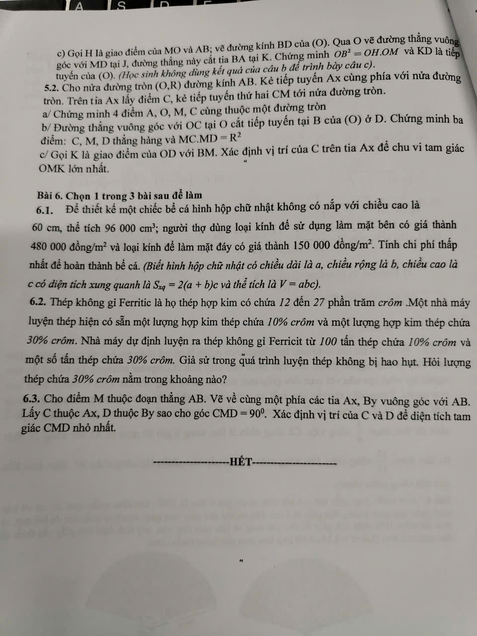 a) Chứng minh bốn điểm A,C,D,O cùng thuộc một đường tròn, xác định tâm và bán kính của đường tròn đó.