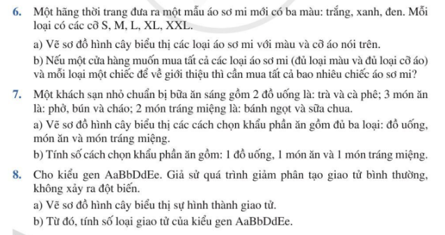 Bài 8 trang 10 Toán lớp 10 Cánh diều Tập 2: Cho kiểu gen AaBbDdEe. Giả sử quá trình giảm phân tạo giao tử bình thường, không xảy ra đột biến.