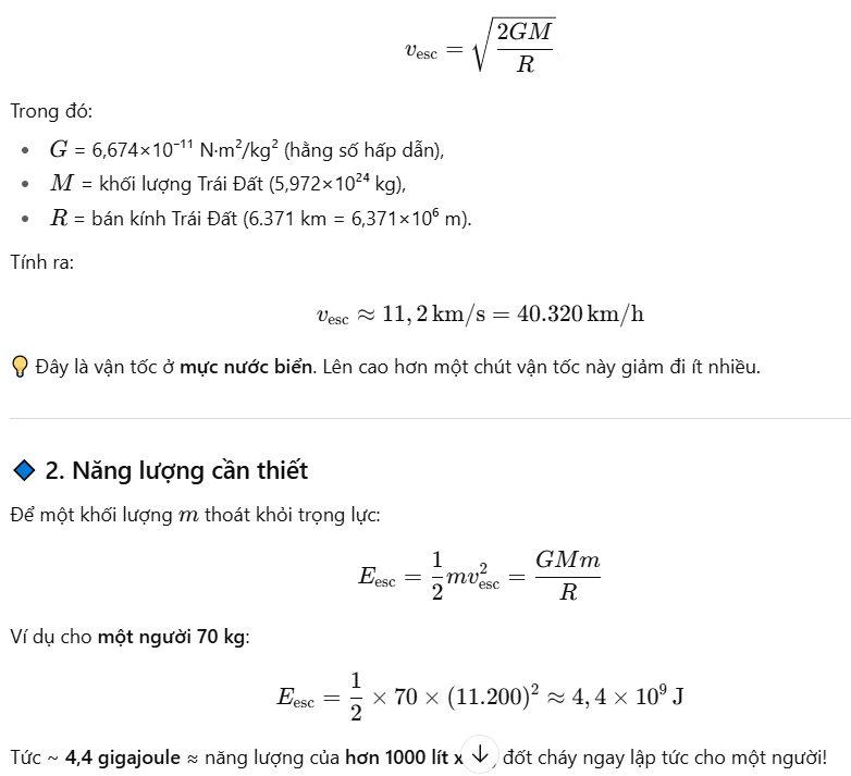 Mình trả lời thật chi tiết cho bạn nhé — đây chính là “vận tốc thoát” (escape velocity) trong vật lý thiên văn 🌍🚀.