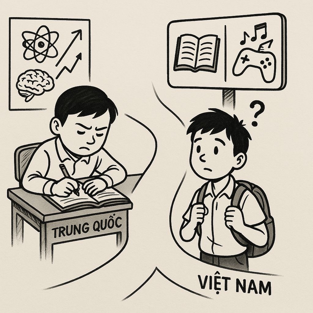 Trong khi học sinh Trung Quốc được rèn luyện trong môi trường cạnh tranh khốc liệt với sự đầu tư mạnh mẽ vào giáo dục và khoa học; thì học sinh Việt Nam